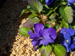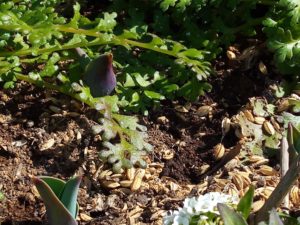 プランターのビオラ、咲いたばかりはきちんと紫色です。植えっ放しになったプランターのチューリップアンジェリケは3つも芽が出て来たものもあります。これは西隣さんのクロッカスです。4番目の花は下に隠れています。