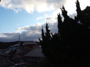 最低気温11度、最高気温16度、晴れ、日が暮れてから曇りになります。南寄りの風が5―6mです。15日月曜日は午前中から雨ですが、風が強く14時頃は15mの予想になっています。明日は爆弾低気圧が来るらしい。