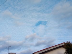写真は2月10日朝に東に出た釈が2枚と昨日11日金曜日17時2分です。3枚目の写真は沈んだ太陽の光に焦点を合わせた為に暗く写っていますが、実際にはずっと明るかったです。4枚目は西からブリッジしているのを見て東を撮りに行きました。羽毛上の雲が珍しいです。5枚目は不思議な雲という事で載せました。方角は東です。