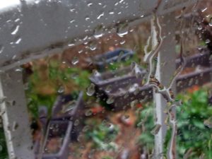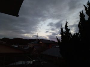 雨雲レーダー予想では9時近くから激しい降りが始まりそうです。一番のピークは12―15時で風雨共に強いです。二階の東の窓は既に洗車場に近く雨がガラスを伝わって勢いよく流れていました。