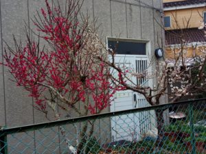 西隣さんの梅も大分咲きました。暖かい気温が影響していますね。物干しから見るとこんな感じです。家の夏蜜柑は上から見るとこんなにすっきりしました。梅の樹と同じで3年は掛かるでしょう。