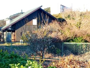 西隣さんの梅もピークです。