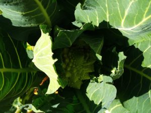明朝、ロマネスコを収穫して頂きます。市場に出る割合は少ないですが、美味しいんですよ。ブロッコリーは嫌いじゃありませんが、手に入らない野菜を育てる様にしています。手前の2つのロマネスコが今朝顔を急に出して来ました。気温や雨などでその気になったのでしょうね。昨日までは葉で顔を覆って恥ずかしそうにしていました。