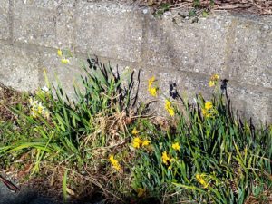 買物の帰り、住宅地の入り口で咲いてた黄水仙と水仙。