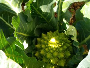 これがロマネスコ大きくなり過ぎ!お隣はホウレンソウが沢山あるから、要らない…ウ~ン、どうしよう。