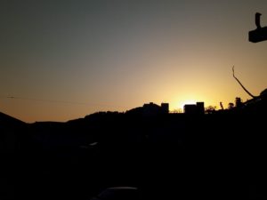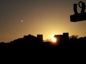 私の夕飯は茹でたロマネスコにチーズとマヨネーズ、大蒜を咥えてグリルで7分位焼きました。16時58分太陽が真ん中の校舎の直ぐ左側に沈んで行きます。今日の日没は17時28分です。右端は1年前2月24日の日没前の写真です。2日早いから同じ感じかな?