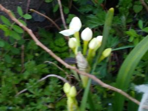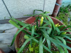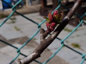 玄関前では白の房咲水仙が開き始め、鉢でも黄色のラッパ水仙の蕾が上がって来ました。右端は白の房咲だと思います。芍薬の鉢も8鉢中7鉢中が芽を出しています。