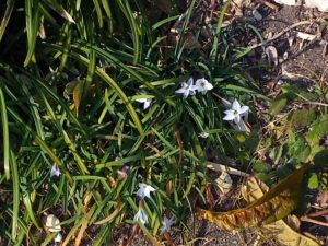 辛夷の花蕾が膨らんで来ました。ひだまりではハナニラが咲いていました。お日様の沈む位置が真ん中の校舎よりも北寄りになりました。