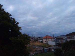 昨夜、20時58分に父島近海の地震がありました。M4.3で父島で震度1、震源地は父島の西ですが、経緯で見ると26.5N,141.6Eとかなり東に寄っています。海嶺の近辺にしてはMが小さかったですね。写真はありませんが、昨日だったかな?買い物に行く時、白い帯び状の雲が東南東―南東をさしていました。写真は24日の朝です。
