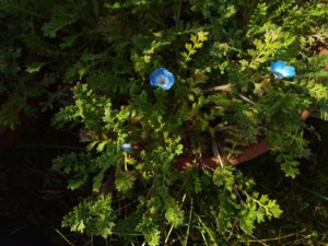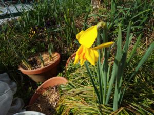 ネモフィラが真っ青な花を開いて居ます。パソ塾から帰って来たら、ラッパ水仙の花が5つになっていました。
