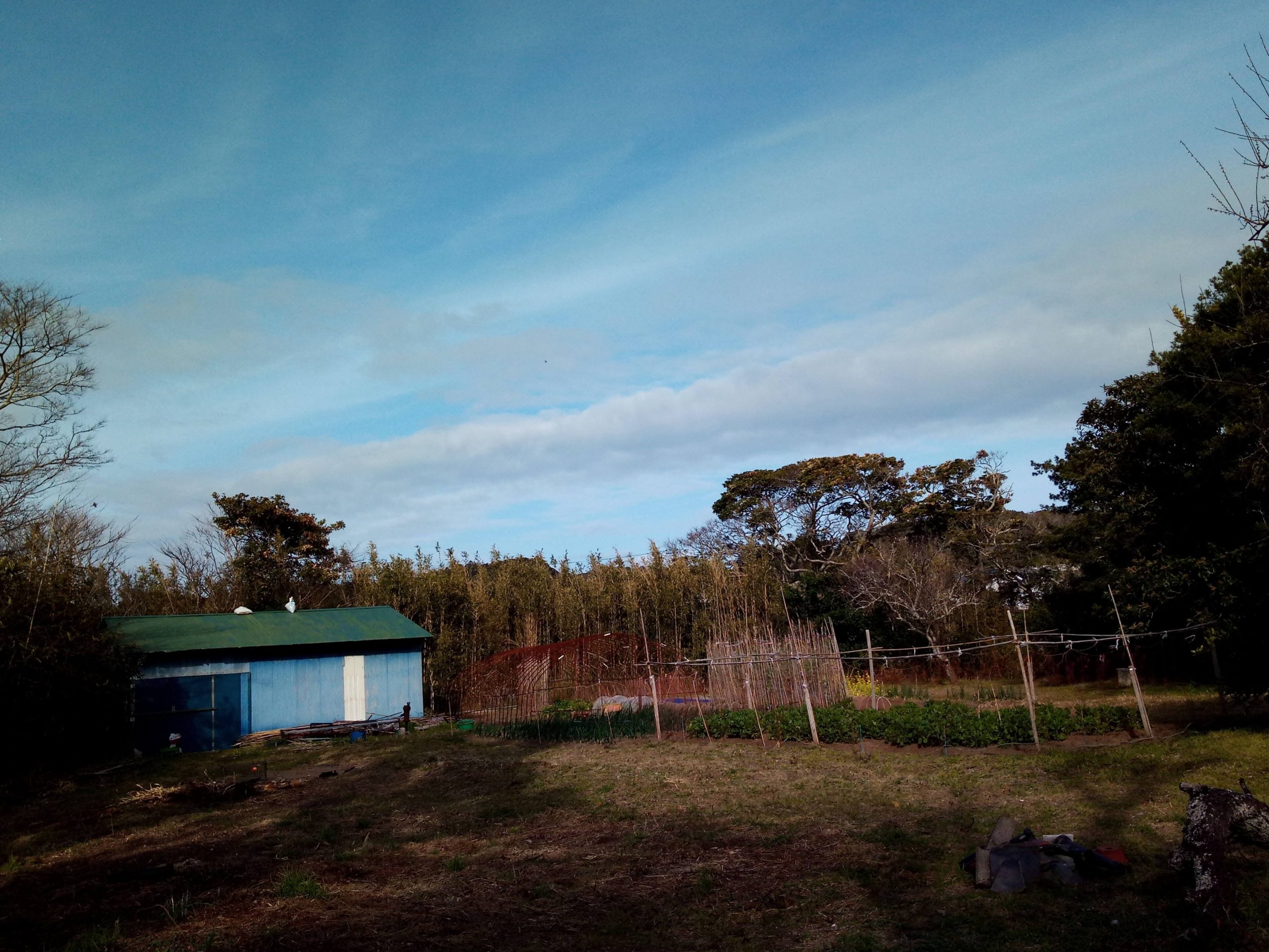 アイキャッチの画像は昨日15時位です。真北―北東に向かって延びる一文字が珍しい位置だなぁ、とIさんの畑から撮りました。