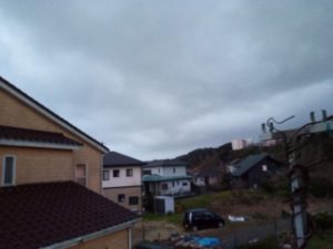 午前中は曇りになっています。気温は高く19度まで行きそう。風のピークは正午辺りで14mです。その後、雨が夜21時頃まで降ります。