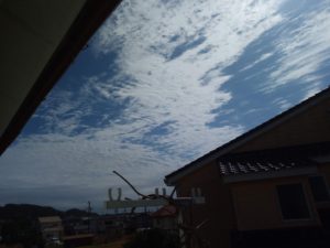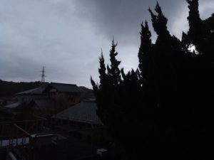既に7時前から雨が降って来ました。昨日西南西に鱗雲が出ていたから、今日は荒天でしょうね。雨は然程強くはありませんが、強い風に叩きつけられています。