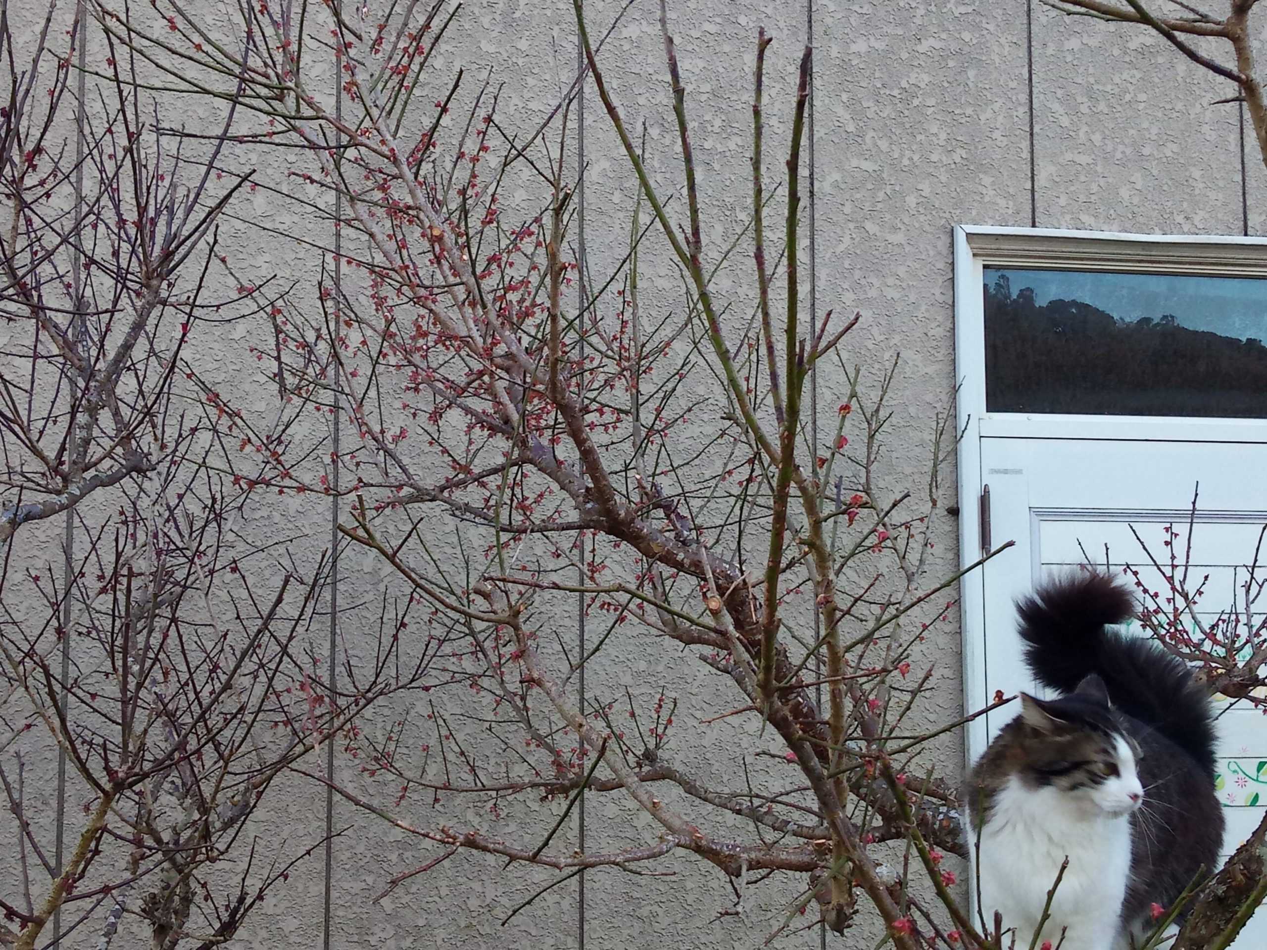 アイキャッチの写真は梅の樹の写真を撮っていたら、『僕も~!』君がピョン!と樹に上って来ました。中々切ッとした福の顔、耳が後ろへ倒れ、尻尾もクエスチョンマークになっています。