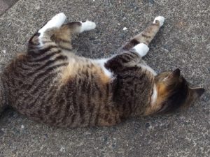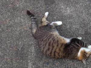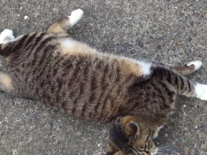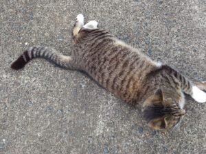 12時を回り、うめもトラ子もちゅ~るを食べに来ました。タイガーさんは我が家でちゅ~るを貰えないのが悔しい、と空いた容器に八つ当たりしていました(笑)。家ではトラ子と福がお昼寝中です。