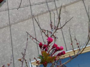 先ずは西隣さんの庭梅が開き始めました。ブロッコリーは小さいけれど、出来ています。直径3―4㎝です。写真だと大きく見えますね。。