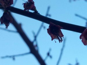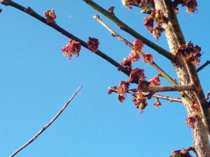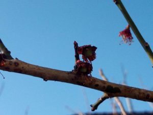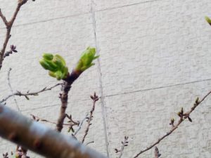 おおたやさんの前の横道に入ると直ぐ見える桜の樹の苞が取れて5―6個の蕾が見えて来ました。。