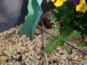 ネモフィラの自然発芽です。見落としていたけれどビオラの中からチューリップアンジェリケが出て来ました。これで6球です。