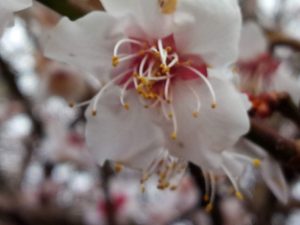 買物に行った時に撮る桜の樹、今日は蕾が広がっていました。中: 我が家の実梅がガクと蕊を脱ぎ捨てました。少しずつ緑の実を見せ始めました。未だ直径5mmの小さな実です。でも、とても嬉しいです。健康に育て~!剪定跡からは赤い葉芽が覗いています。