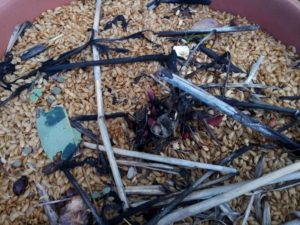 帰って来たら、誰かが草を食べて吐いた跡がありました。トラ子かな?食べたものを吐いたのでなければ良いや。