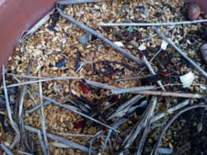 帰って来たら、誰かが草を食べて吐いた跡がありました。トラ子かな?食べたものを吐いたのでなければ良いや。