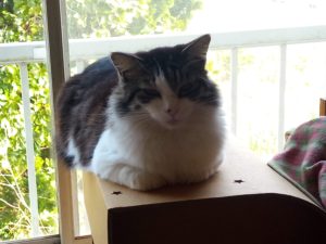 3時起きでした。12時頃にタイガーさんが『窓を開けて~!僕だよ~。』、と言って居たので開けて、シャコタンが入って来ない様に閉めて寝ました。3時になったら誰かが爪とぎをガリガリ!見たら、猫達は外出モードでした。うめは先ずトイレに出掛け、他の3匹はご飯を食べて、外出して行きました。