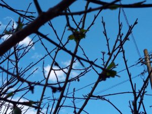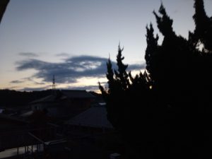 日、一日とはやくなる夜明けですが、今朝は5時5分に西の空が微かに白んでいました。東には澄んだ空が見えるのに、雲がある南は真っ暗です。それから10分もしない内にカイヅカイブキでは鶯が鳴き始めました。