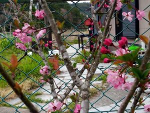 ハナカイドウ、ネモフィラも今が盛り、入り口の白躑躅。