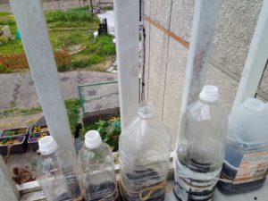 ウィンターソウイングwinter-sowingを始めて一週間が経ちました。勿論、動きは未だありません。物干しにあるのは、南瓜とトスカーナバイオレットが一週間経ち、2日目経ったのが茄子です。今日、新たに2本位追加出来れば、強力米寿をペットボトルに入れてみます。