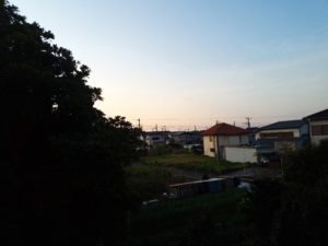 5時22分の夜明け。日の出9分前です。家々の屋根が濡れています。猫達が寒がるわけですね。福は昨夜の夜勤のせいで既に昼寝です。8時近くになったらお隣にご挨拶に行くのでしょうね。5時31分が日の出です。
