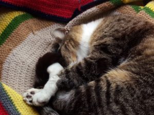 タイガーさんは昨夜11時頃にやって来て1時半に外出。福も2時半に外出。4時に起きた時にはうめが外出中で、福は居ました。トラ子も無事にジュレを食べて外出です。オシャカナは帰ってきたらね、と言ったら私の顔をジッと見ていました。