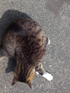 11時、猫達はちゅ~るタイム。その後でトラ子が頻りにアピールしています。私の鰹を狙っているな!