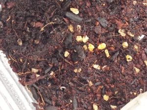 左上の南瓜は殻が昨夕には脱げていませんでした。このボトルには欲張って12個の種を入れて仕舞いました。幾つ発芽するでしょうね。昨夕には最早く発芽を済ませた苗が大きく葉を広げて来ましたので、近い内に2分割したほうが良いでしょう。今朝の写真を明るくなったら載せて見ましょう。