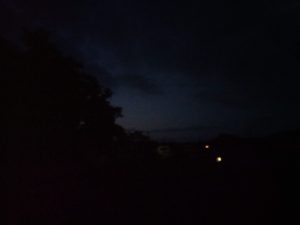 曇っているらしく、暗いなぁ。4時48分。東にポツンとあるのが太陽の光かなぁ。