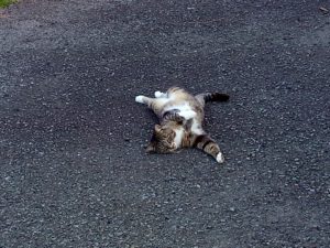 11時、猫達は時計があるの?ちゅ~るタイムだよ、って3匹が来ました。その後、トラ子と福が家で昼寝です。
