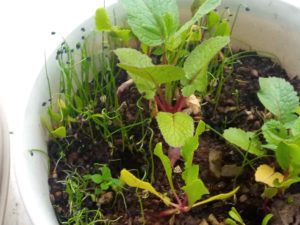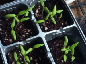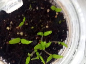 左: 葱って嫌光性なんだけど、蒔いただけで発芽して来た。但し、晴れている日は毎日水遣りが必要です。