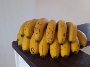 先日届いた台湾バナナ、段ボールの室の中で熟してほくろが出て来たけれど、もうそろそろかしらね。食べ始めるのと熟成が進むのとどっちが早い?、という競争になるのかな。前回、2020年の10月にはパクパークと食べてしまいました。だから、今回は”待つ”がテーマです。