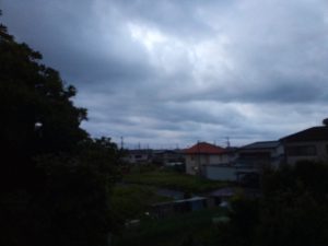 今が最低気温の8度台、最高気温は16度で正午過ぎね。風は今やや強くて7―8m吹いているけど、これは向きが変って東になって風力は弱くなりますよ。夕方にはまた北寄りへ戻ります。写真は5時10分の空です。