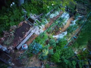 5時10分の庭は未だ暗いですね。右も同じ時間だけど、堆肥枠に土を乗せた処です。後二杯くらいバケツで持って来ましょう。赤玉を敷く、正に土台になります。勿論、その上から刈草を置いて行きます。マルチです。そして、不織布をウリハムシ避けに掛けます。花が咲いて、そろそろ出ますけどねぇ、と南瓜が言い出すまで、掛けて置きます。這い回り始めたら、8時までに受粉をします。お盆までが着果の季節です。それを過ぎると、花のタイミングがずれて来ます。今年の種は二連続雌花の種の筈だけど、二連続雌花は果たして出て呉れるかなぁ。