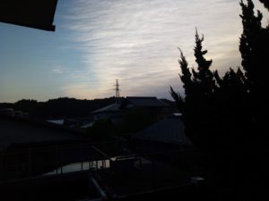 5時に起きました。うめが段ボールベッドに居ました。玄関を開けると福が走って来て一緒に二階へ。外は曇っていますが、雲が高いです。最高気温17度って、今と変わらないという事ですかね。風は吹き返しで南西―西南西で14m程午前中から吹くみたいです。