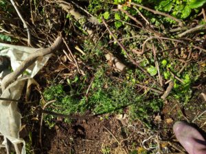 大浦牛蒡は何処か蒔き床を探して密植栽培で細く育てます。