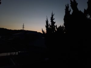 5時を過ぎたら、微かにですがサッと結露した、と思いましたが、これは一階でお湯を沸かしたせいですね。お隣の屋根瓦も濡れています。