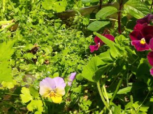 中&右: お隣から頂いたクローバーのパッチが活着しました。