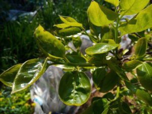 夏蜜柑の古い葉が密かに落ちています。役目終了、ご苦労さんでした。花は未だ開きかけですが、かたまって咲きそうですよ。ほら、写真の上の方です。