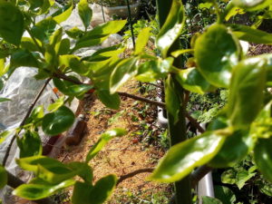 夏蜜柑の古い葉が密かに落ちています。役目終了、ご苦労さんでした。花は未だ開きかけですが、かたまって咲きそうですよ。ほら、写真の上の方です。