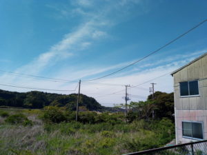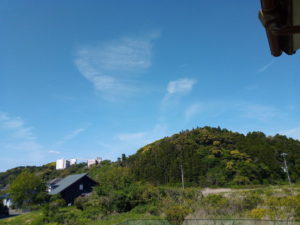 右: 綺麗な初夏らしい空です。今の緑は3月の緑と違って逞しいです。それでも6月のむせ返る様な緑ではありません。