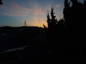 最高気温は20度になりそう午後になると北東の風から東北東の微風に変る予想です。10日間天気予報では、相変わらず日曜日の午後と29日30日の雨風(多少弱まった予想にはなりましたが)が予想されています。4時54分の静かな夜明け直後の空です。