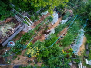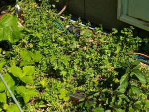 8時過ぎ、物干しに野菜を出しました。今日は物干しの野菜達に施肥をします(完了)。