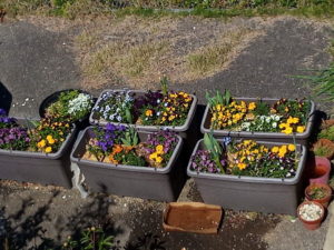 昨年サツマイモを挿して収穫してそのままビオラを植え付けました。4月になってナメクジの害はありましたが、ピンチングを二回しても回復力も早く、中々の出来でした。