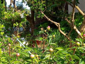 庭仕事…余り真面目にはやっていませんが…福とうめが付いて来ます。私にとっては食べ物の野菜も、猫達には単なる草です。倒れた極早生玉葱の上にデン!と座った福は直ぐに何処かへ行ってしまいました。